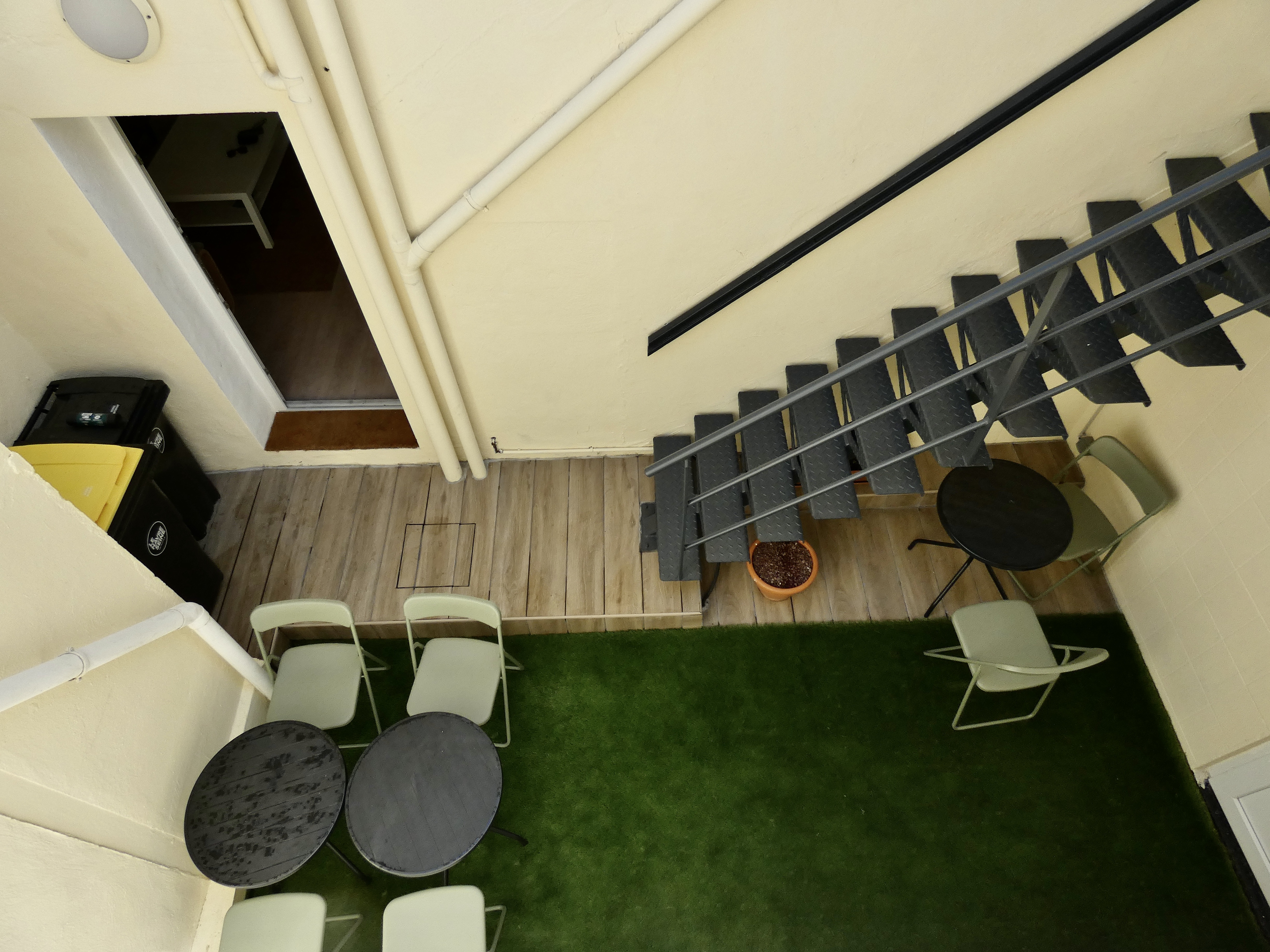 Espace extérieur privatif avec 3 tables. Parfait pour une pause.